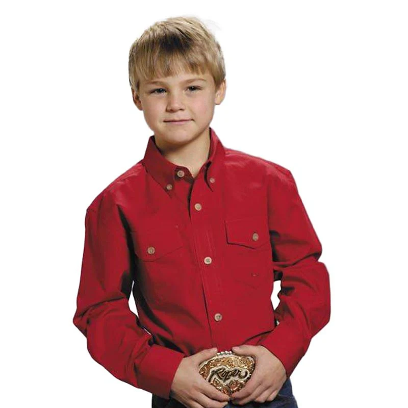 Roper Boys Poplin Western Shirt - Solid Red Lg Br