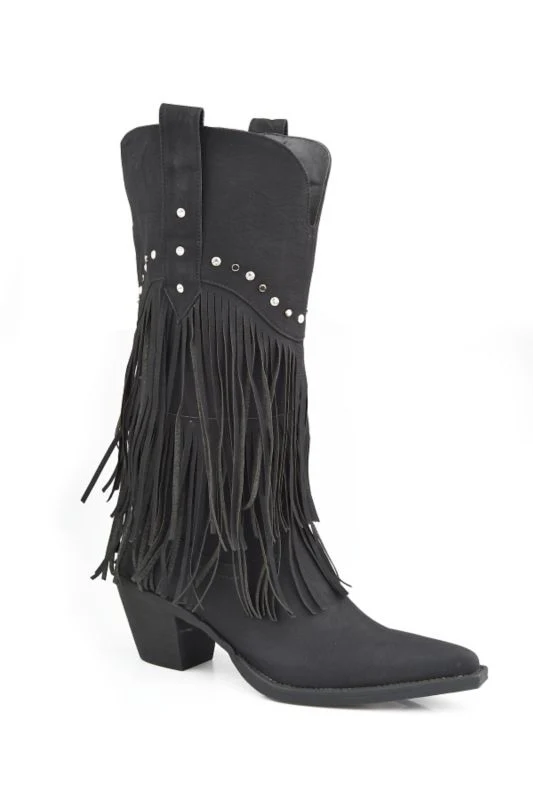 Roper Ladies Snip Toe 12in Fringe Brown Boots