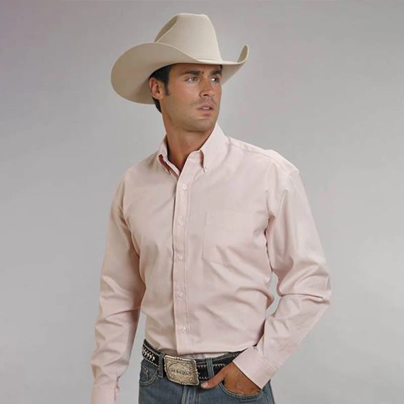 Stetson End On End Solid * Btn Down Collar * 2 Pkts W/ Flaps * 1 Pt Back Yoke W/ Pleat * "S" Emb On Right Cuff Placket * 2 Btn Adjustable Mitered Edge Cuff * Classic Btn Front Featuring Stetson Logo Stacked Pearl Btns *